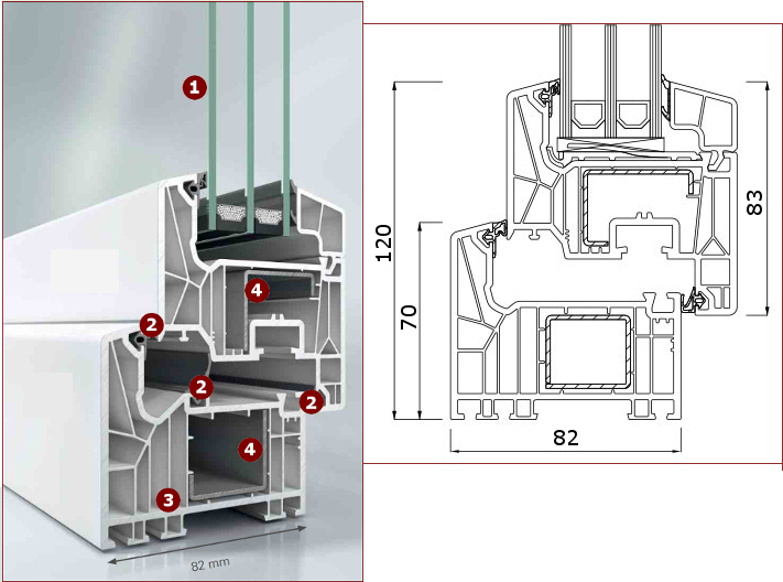 3) 7-Kammer-System mit 82 mm Einbautiefe;